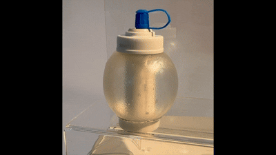 Pumpen krymper i takt med att läkemedlet ges under behandlingen.